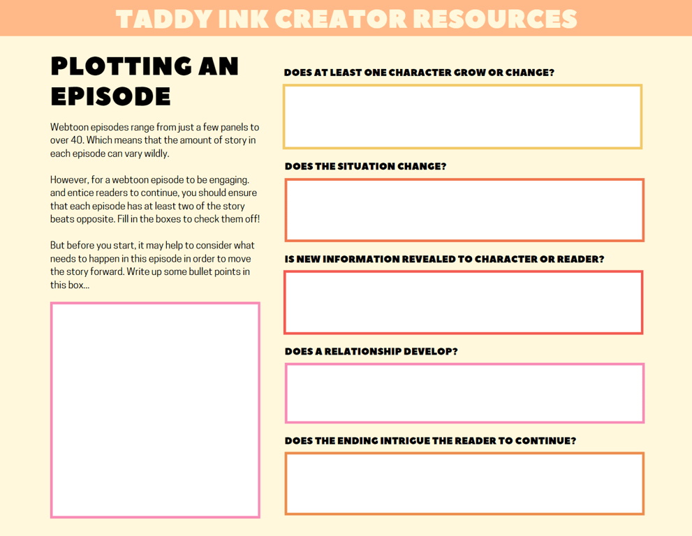 Use this worksheet to check off all the story beats that your webtoon episode needs!