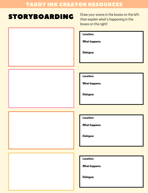 These worksheets should help you think about these things, while providing you with a space to create your webtoon storyboards.